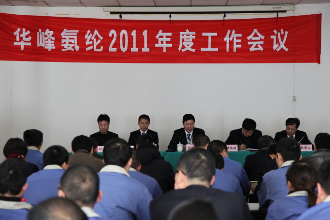 2011年2月14日,集團2011年度工作會議和董事局(擴大)會議后第二天,氨綸公司在莘塍工廠會議室召開2011年度工作會議。公司總經(jīng)理楊從登作總經(jīng)理工作報告,公司高管、中層干部及部分班組長參加會議。