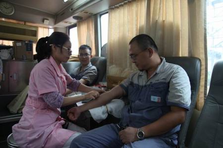 獻(xiàn)血辦的采血車一到,填表、驗血、體檢、抽血等隨即有序展開。徐寧副總經(jīng)理等公司高管帶頭參與,用自己的實際行動展現(xiàn)了他們的無私奉獻(xiàn)。值得一提的是,來自機(jī)修C班組會暈血的薛介鋒同志克服自己的心理矛盾毅然參加獻(xiàn)血;來自電儀E班組的楊波同志已經(jīng)先后有八次參加義務(wù)獻(xiàn)血經(jīng)歷,奉獻(xiàn)了2300ML的熱血。所有獻(xiàn)血者在拔除針頭后,都放棄了休息,立即奔赴各自的工作崗位,繼續(xù)投入到緊張的工作中。