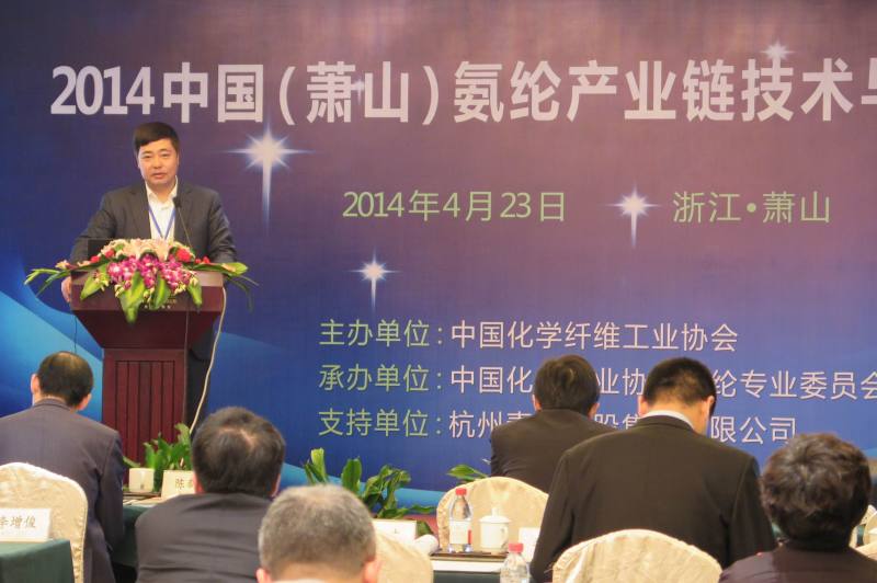 4月23日,中國化纖協(xié)會在蕭山舉辦“2014中國氨綸產(chǎn)業(yè)技術(shù)與市場論壇”,來自氨綸上下游企業(yè)、產(chǎn)品供應(yīng)鏈貿(mào)易商、相關(guān)高等院校、科研院所、金融證券以及咨詢機(jī)構(gòu)的學(xué)者及專家參加本次論壇。作為全國化纖協(xié)會氨綸專業(yè)委員會主任單位,華峰氨綸公司總經(jīng)理潘基礎(chǔ)應(yīng)邀出席并作主題發(fā)言。