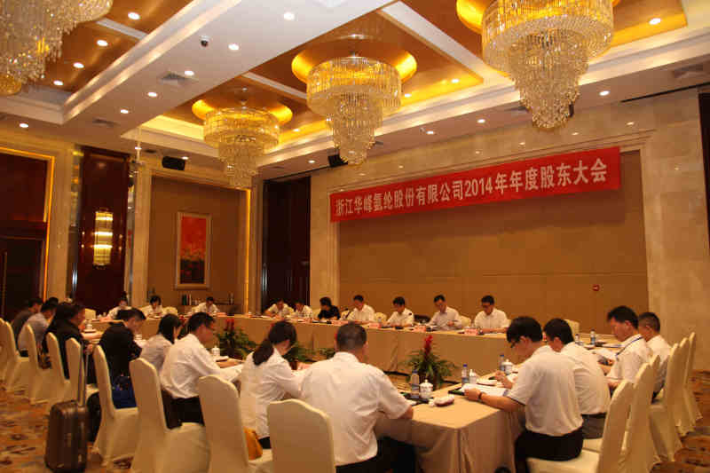 5月20日下午,華峰氨綸2014年度股東大會在瑞安國際大酒店會議廳召開。大會對2014年度董事會工作報告、2014年度監(jiān)事會工作報告和2014年度利潤分配預案等十二項議題進行表決。