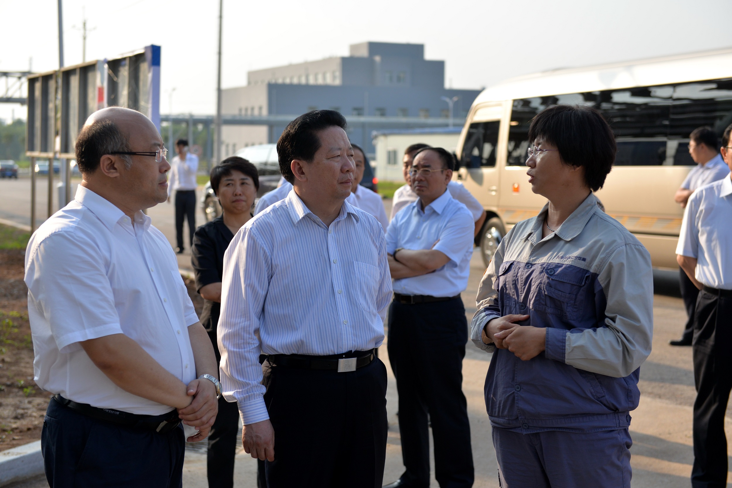 7月3日,遼寧省新任省長陳求發(fā)在遼陽市委書記王正譜、常務(wù)副市長黃之峰、宏偉區(qū)委書記趙強等領(lǐng)導(dǎo)的陪同下視察遼寧華峰化工。