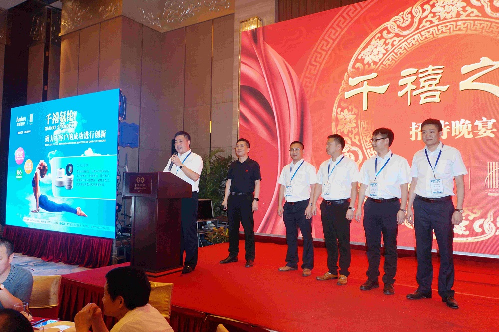 會(huì)議期間,華峰氨綸公司承辦了“千禧之夜”招待晚宴,總經(jīng)理潘基礎(chǔ)發(fā)表了熱情洋溢的致辭,公司與會(huì)人員同客戶進(jìn)行了廣泛交流。在技術(shù)交流會(huì)現(xiàn)場(chǎng),公司總經(jīng)理潘基礎(chǔ)為獲得2015年“宗平生針織基金會(huì)”優(yōu)秀論文的代表頒獎(jiǎng),公司副總經(jīng)理?xiàng)顣杂∽髁思夹g(shù)交流專題報(bào)告,并就華峰氨綸的發(fā)展戰(zhàn)略、產(chǎn)品特色與技術(shù)發(fā)展等內(nèi)容向與會(huì)人員作了全面介紹,增進(jìn)了客戶和業(yè)內(nèi)專家對(duì)華峰氨綸的了解,擴(kuò)大了“千禧”氨綸的品牌知名度。
