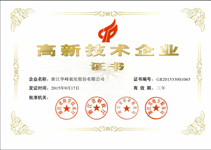 據(jù)悉,氨綸公司于2009年通過國家高新技術(shù)企業(yè)認(rèn)定,于2012年通過國家高新技術(shù)企業(yè)復(fù)審,并于2013年獲得國家火炬計劃重點高新技術(shù)企業(yè)稱號。