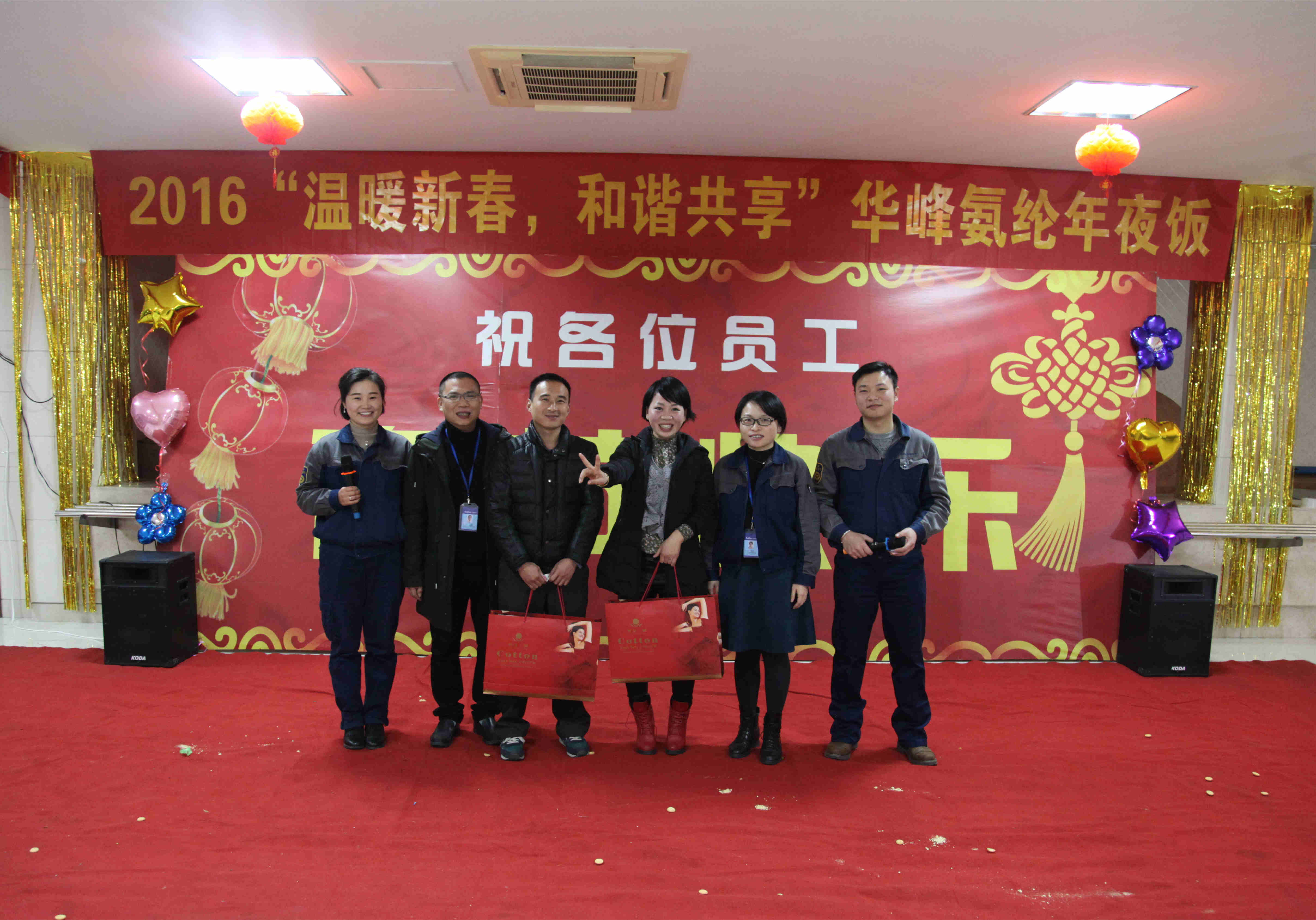 晚會在華峰氨綸公司生產(chǎn)副總徐寧的致辭中拉開帷幕,徐總首先代表公司向一直以來為公司發(fā)展辛勤工作、默默奉獻(xiàn)的廣大員工致以誠摯的謝意和新年的問候。他希望全體員工堅(jiān)定信心、凝聚共識、上下齊心,為2017“品質(zhì)品牌提升年”保駕護(hù)航,再創(chuàng)佳績。在游戲和歌曲中,晚會現(xiàn)場氛圍不斷升溫,莘塍員工婁茂盛的一首粵語歌《鐵血丹心》立馬就把全場的氛圍帶動起來;包裝E車間員工江和平一曲動人的《愛要有你才完美》勾起許多人的回憶,引起共鳴。期間,還穿插了“聞雞起舞”、“五毛與一塊”等游戲,同事們踴躍參加,都拿到了心儀的獎品。在“擠眉弄眼吃餅干”游戲中,工會副主席吳海峰、陳永武及東山D工廠副廠長葉國建等領(lǐng)導(dǎo)和嘉賓也參與其中,一個(gè)個(gè)搞怪的表情更是“笑趴”全場。當(dāng)然,晚會中最讓員工關(guān)注的還是抽獎環(huán)節(jié)。公司領(lǐng)導(dǎo)為回饋外來職工的辛勞付出,共設(shè)置1個(gè)特等獎、2個(gè)一等獎、6個(gè)二等獎、17個(gè)三等獎和70余個(gè)參與獎,人均獲獎率達(dá)45%。