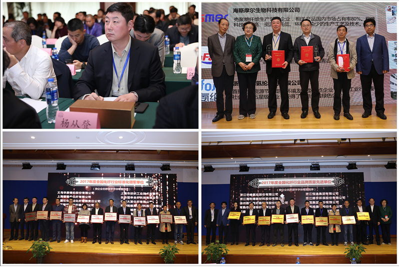 3月14日,中國化纖行業(yè)高質量發(fā)展論壇暨中國化學纖維工業(yè)協(xié)會第六屆第四次理事擴大會議在上海召開。會上,華峰氨綸公司表現(xiàn)搶眼,一舉拿下四項大獎——“2017年度全國化纖行業(yè)品牌質量先進單位”、“‘千禧’品牌抗紫外氨綸入圍中國纖維流行趨勢2018/2019”、“中國化學纖維工業(yè)協(xié)會·綠宇基金綠色貢獻度銅鑰匙獎”和“2017年度全國化纖標準化先進單位”。中國化纖協(xié)會氨綸分會會長、公司董事長楊從登頻頻上臺領獎。會上,化纖協(xié)會還公布了“2017年中國化纖行業(yè)產(chǎn)量預排名表”,華峰氨綸公司列中國氨綸行業(yè)產(chǎn)量第一名。