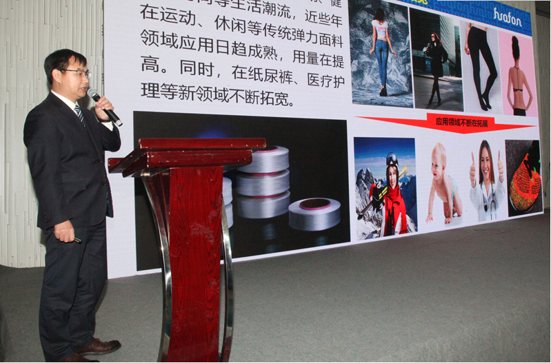 中國化學纖維工業(yè)協會氨綸分會會長、氨綸公司董事長楊從登在致歡迎辭中首先代表華峰氨綸向出席論壇的各位領導和來賓表示最熱烈的歡迎。他指出,氨綸分會成立,在各成員單位的共同努力下,積極推進行業(yè)自律,約定了產品標識的旦數規(guī)格和數量標準,確定檢測方法,并組織自律行為抽檢,監(jiān)督行業(yè)有序競爭;氨綸分會還大力促成綠色發(fā)展標準的制定發(fā)布,積極組織氨綸企業(yè)發(fā)布新產品、參與各類展會,不定期召開專題會議,互通互供信息,分享清潔生產和節(jié)能降耗經驗,共同推動了氨綸行業(yè)的平穩(wěn)健康發(fā)展。