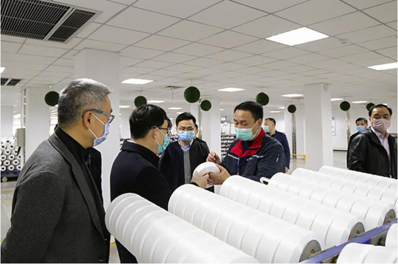 調(diào)研組一行來到氨綸生產(chǎn)車間,看到生產(chǎn)現(xiàn)場安全有序、員工防護(hù)到位、生產(chǎn)設(shè)備火力全開,王曦連連稱贊,對(duì)公司防疫措施和復(fù)工復(fù)產(chǎn)取得的成績給予充分肯定。當(dāng)?shù)弥本]產(chǎn)品是防疫物資生產(chǎn)原料且公司馳援疫情一線情況后,更是高度贊揚(yáng)。