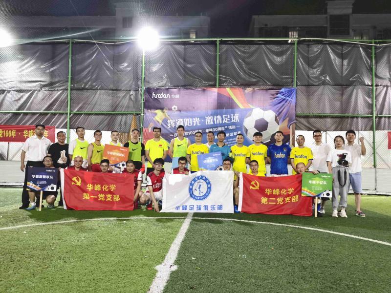 8月11日,作為慶!敖h100周年•華峰30周年”系列活動之一,華峰足球俱樂部主辦瑞安基地首屆華峰集團男子五人制足球賽”在瑞安十八家球場落下帷幕。由華峰化學黨總支推選的華峰原子隊勇奪冠軍,集團公司華峰千億隊獲得亞軍,華峰新聚聯(lián)隊和華峰跨領(lǐng)域隊分獲季軍和殿軍。本活動由華峰化學公司第二黨支部承辦,第一黨支部協(xié)辦。