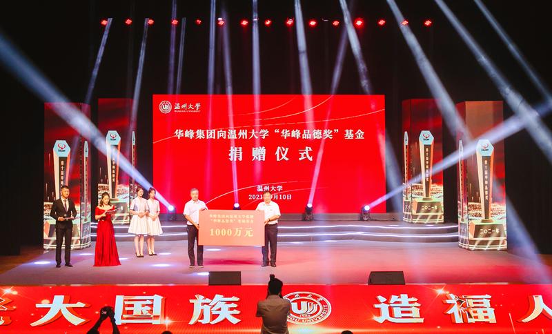 尤飛宇指出,經(jīng)過10年的發(fā)展,溫州大學(xué)“華峰品德獎(jiǎng)”已經(jīng)成為一個(gè)具有知名度的公益品牌,贏得了社會(huì)各界的充分肯定。為此,他還帶來一個(gè)好消息:華峰集團(tuán)將在原來設(shè)立的1000萬元品德基金基礎(chǔ)上,再追加1000萬元,一如既往地支持溫州大學(xué)的德育工作,進(jìn)一步加大對道德模范的激勵(lì)和褒獎(jiǎng)。通過此次捐贈(zèng)表明,在下一個(gè)十年,“華峰品德獎(jiǎng)”將繼續(xù)成為弘揚(yáng)溫大“厚培德本”優(yōu)良傳統(tǒng)與華峰“以德為先”人才理念、傳播社會(huì)正能量的精神沃土,深入推進(jìn)校企雙方共同的價(jià)值追求。