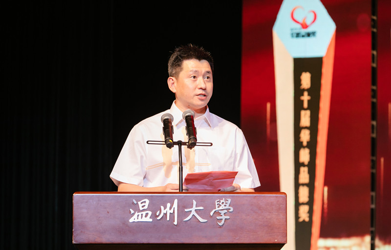 華峰集團(tuán)董事長尤飛宇在致辭中有感而發(fā),他說,十年來,“華峰品德獎(jiǎng)”初心未改,不斷發(fā)掘身邊的品德榜樣,用一份份信得過、學(xué)得到的品德事跡,充分展現(xiàn)了溫大深厚的育人底蘊(yùn)和溫大人的優(yōu)秀品格,為溫大廣大師生和社會(huì)各界樹立了鮮活榜樣,也為企業(yè)加強(qiáng)員工道德實(shí)踐及教育最具說服力的鮮活教材。他號(hào)召大家要與道德同行,向榜樣看齊,共同做文明道德風(fēng)尚的傳播者、踐行者和引領(lǐng)者,用生活中的每一件善舉,匯成崇德向善的時(shí)代潮流。