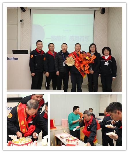 歡送會(huì)上,主持人江斌斌播放了朱永選工作場(chǎng)景回憶視頻和全部動(dòng)力班組的祝福視頻,一個(gè)個(gè)熟悉的工作場(chǎng)面,一張張溫馨的團(tuán)建畫面,一句句打趣的祝福語,無不勾起大家美好的記憶,F(xiàn)場(chǎng)播放的《朋友》歌曲,大家齊聲高唱,有越唱越激昂的,有邊唱邊濕潤(rùn)眼眶的,現(xiàn)場(chǎng)流露出濃濃的不舍之情。正如動(dòng)力班長(zhǎng)倪曉豐說的:“認(rèn)識(shí)朱大哥十多年,他總是笑嘻嘻的,和他交往總是那么和氣,現(xiàn)在要退休了,真的挺舍不得的!弊詈螅(huì)主席李娟、制造部經(jīng)理葉國(guó)建和公用工程主管王建鋒為朱永選分別獻(xiàn)上退休紀(jì)念牌、榮耀綬帶和鮮花,朱永選同志也用他最樸實(shí)的話語,講出了自己即將離開二十多年工作單位的不舍之情,句句樸素,但句句打動(dòng)人心。