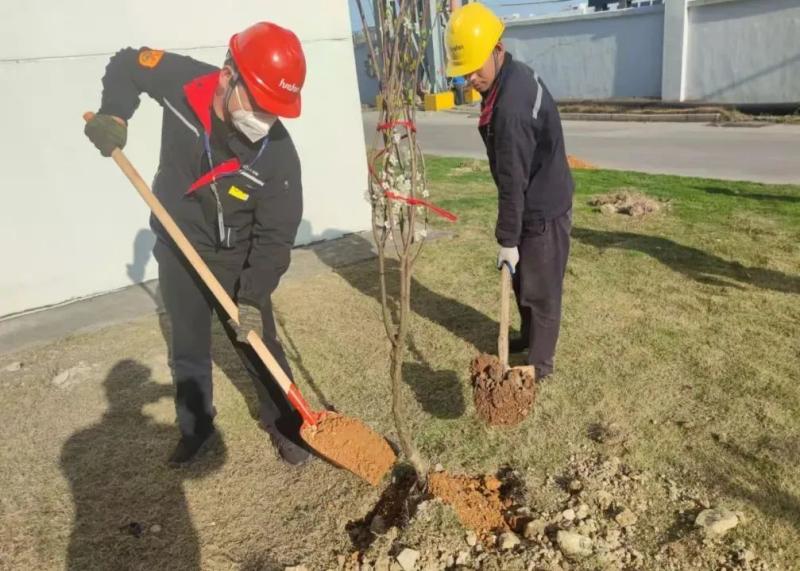 本次活動種植了桂樹、茶樹、枇杷樹等合計35株樹苗,參與人員約40人。每株樹苗上都掛上了種植人和樹種名稱,參與人員除了種樹外,還需定期養(yǎng)護樹苗。本次活動得到了參與人員的強烈響應,紛紛表示希望明年的植樹節(jié)也能在熱電進行。本次活動不但踐行了華峰的綠色理念,也同時美化了公司環(huán)境,到了今年秋天,大家就可以體驗收獲果實的樂趣了。(陳余輝)