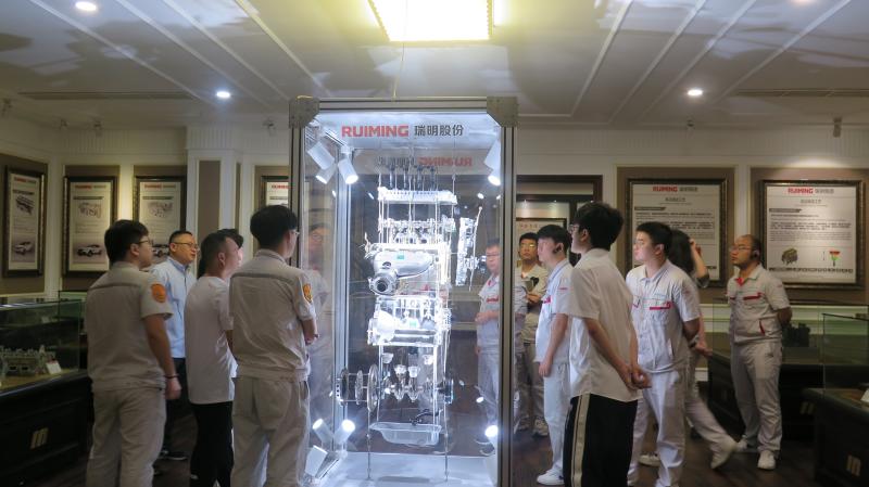 在瑞明股份公司黨總支書記、行政負責(zé)人錢琦嘉的介紹下,一行人來到文化展廳,通過豐富的內(nèi)容展示,大學(xué)生了解了瑞明的發(fā)展歷程。在產(chǎn)品展廳,通過工作人員多角度的講述,大學(xué)生們對瑞明及其汽配產(chǎn)品有了深入的了解。在智能化生產(chǎn)車間,機器換人大規(guī)模、成系統(tǒng)實施,信息化、高精度、高效率、低勞動負荷的突出亮點,給參觀人員留下了深刻的印象。