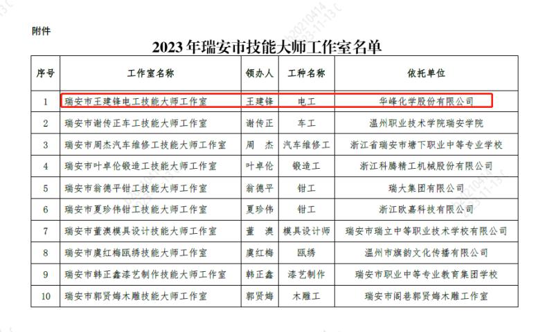11月初,公司員工王建鋒領銜的電工技能工作室獲評“瑞安市王建鋒電工技能大師工作室”稱號,這是公司繼獲評“浙江省黃章勛高技能人才創(chuàng)新工作室”“溫州市許玉良技能大師工作室”后,在工匠人才團隊培育中,取得的又一項新成果。