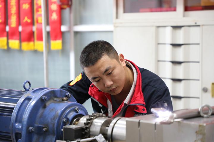在鉗工擂臺賽現(xiàn)場,一臺減速機(jī)和泵組成的連體設(shè)備擺放在黃章勛大師工作室,“齒輪泵聯(lián)軸器調(diào)整”對于華峰集團(tuán)瑞安各個(gè)生產(chǎn)型子公司,都是一個(gè)共性操作項(xiàng)目,檢驗(yàn)的是機(jī)修工對日常傳動設(shè)備的精準(zhǔn)對接能力。在第二個(gè)比賽日,在新材料公司選手張乾形完成比賽后,工作室牽頭人黃章勛在聚合車間電話通知化學(xué)公司選手薛孝西抽空參賽。半個(gè)小時(shí)后,薛孝西忙完手中的檢修任務(wù)來到工作室,只見他在監(jiān)控設(shè)備前,給記錄時(shí)間的對接人打完電話,就馬不停蹄地進(jìn)行了熟練操作。架上百分表、調(diào)減速機(jī)底座、插入調(diào)整墊片、調(diào)整聯(lián)軸器中心點(diǎn),一次一次循序漸進(jìn),經(jīng)過多次細(xì)調(diào),薛孝西花費(fèi)24分38秒時(shí)間完成調(diào)試任務(wù),隨后打電話上報(bào)比賽完結(jié)。薛孝西坦言:“這種自主式打擂臺的新方式,讓我有充足的時(shí)間安排日常工作,不耽誤事情。剛剛比完項(xiàng)目,我就可以去檢修了,時(shí)間很緊湊!鳖愃频牟僮鳎陔S后的時(shí)間里,十多位選手挨個(gè)大展身手。他們需要接受苛刻的操作考核,不僅要在最短時(shí)間內(nèi)完成操作,而且還要將手工調(diào)整好的設(shè)備軸距和徑距誤差,控制在0.05毫米范圍內(nèi),相當(dāng)于一根頭發(fā)絲的一半粗細(xì)。